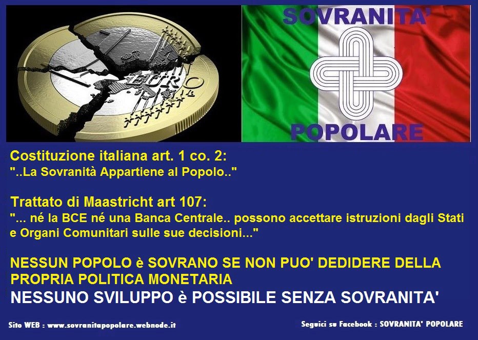 In realtà è fin troppo semplice comprendere che con la ratifica dei trattati di Maastricht e di Lisbona, e con l'adesione al MES....ed il persistere nelle "politiche" dettate dai detentori dell'emissione della moneta unica, la Costituzione che vorrebbe "la disciplina e la tutela del risparmio come dovere della Repubblica"... rimane LETTERA MORTA.